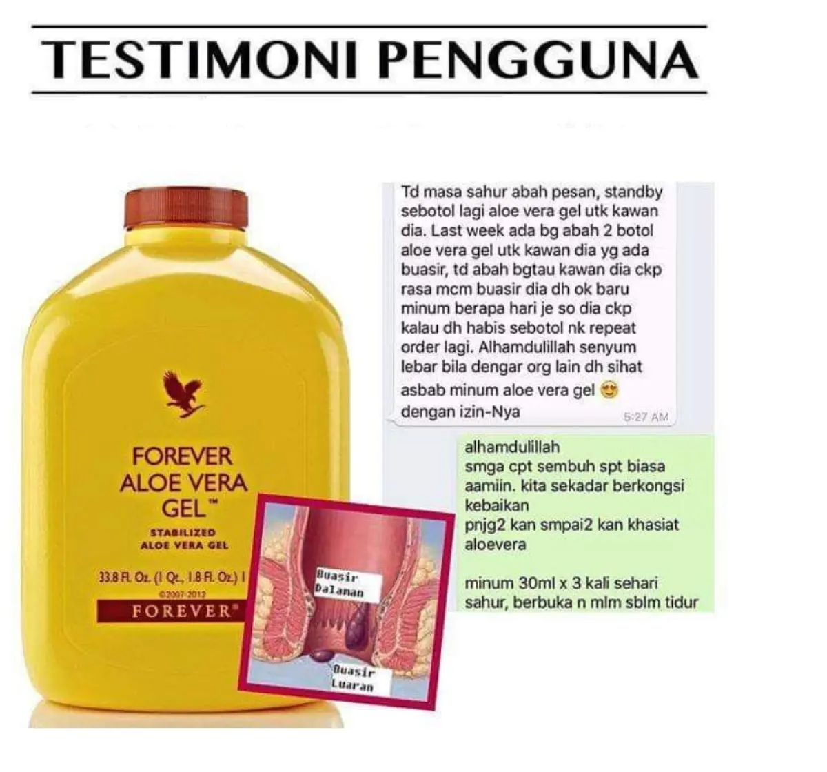 Original Forever Living Aloe Vera Gel Buang Toksin Kolestrol Darah Tinggi Diabetes Gout Kanser Usus Shopee Malaysia